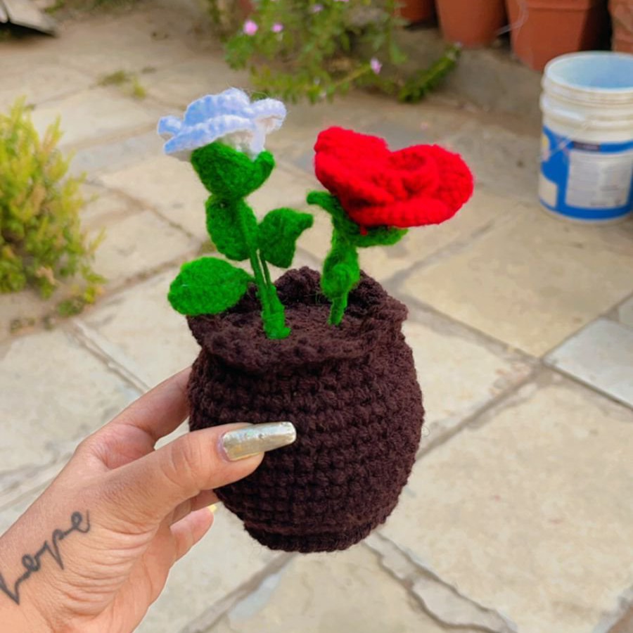 NOTE:- WhatsApp us for colour combination of flowers Bring a touch of handmade charm to your home with this adorable crochet flower in a cute pot. Perfect for adding a pop of color to any room, this delightful decoration is sure to brighten your day. Made with love and care, this unique piece is a great gift idea for any occasion. Add a bit of whimsy to your decor with this lovely crochet flower with pot today!