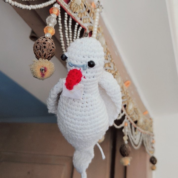 Add a charming touch to your home decor with this Handmade Crochet Pigeon Decor. Crafted with care and attention to detail, this adorable pigeon is perfect for adding a whimsical flair to any room. Made from high-quality materials, this unique piece is a great addition to your collection of handmade items or a thoughtful gift for a bird lover in your life. Whether displayed on a bookshelf, desk, or mantel, this crochet pigeon is sure to bring a smile to your face every time you see it.