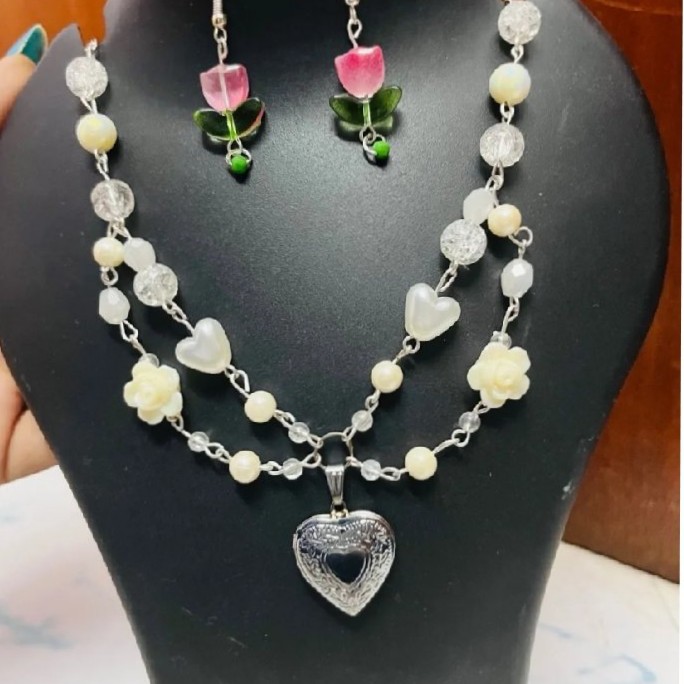 NOTE:- WhatsApp us for colour combination. Add a touch of social media glamour to your outfit with our Pinterest Necklace. This dainty and stylish piece features a delicate pendant inspired by the iconic Pinterest logo. Perfect for the fashionable trendsetter looking to make a statement. Made with high-quality materials, this necklace is a must-have accessory for any fashion lover.